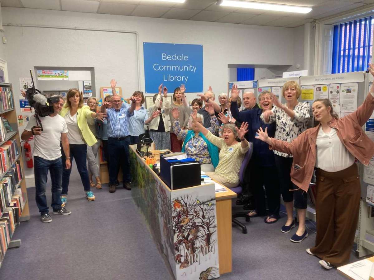 What a day for Bedale Community Library! BBC Breakfast wanted to use a library in connection with a feature on disappearing libraries throughout the UK, and show that with the help of volunteers from the community they can be saved. An application was sent by one of our trustees and we were chosen! The BBC broadcasting unit rolled into Bedale at 5am, making it a very early start for our volunteers appearing on the programme.